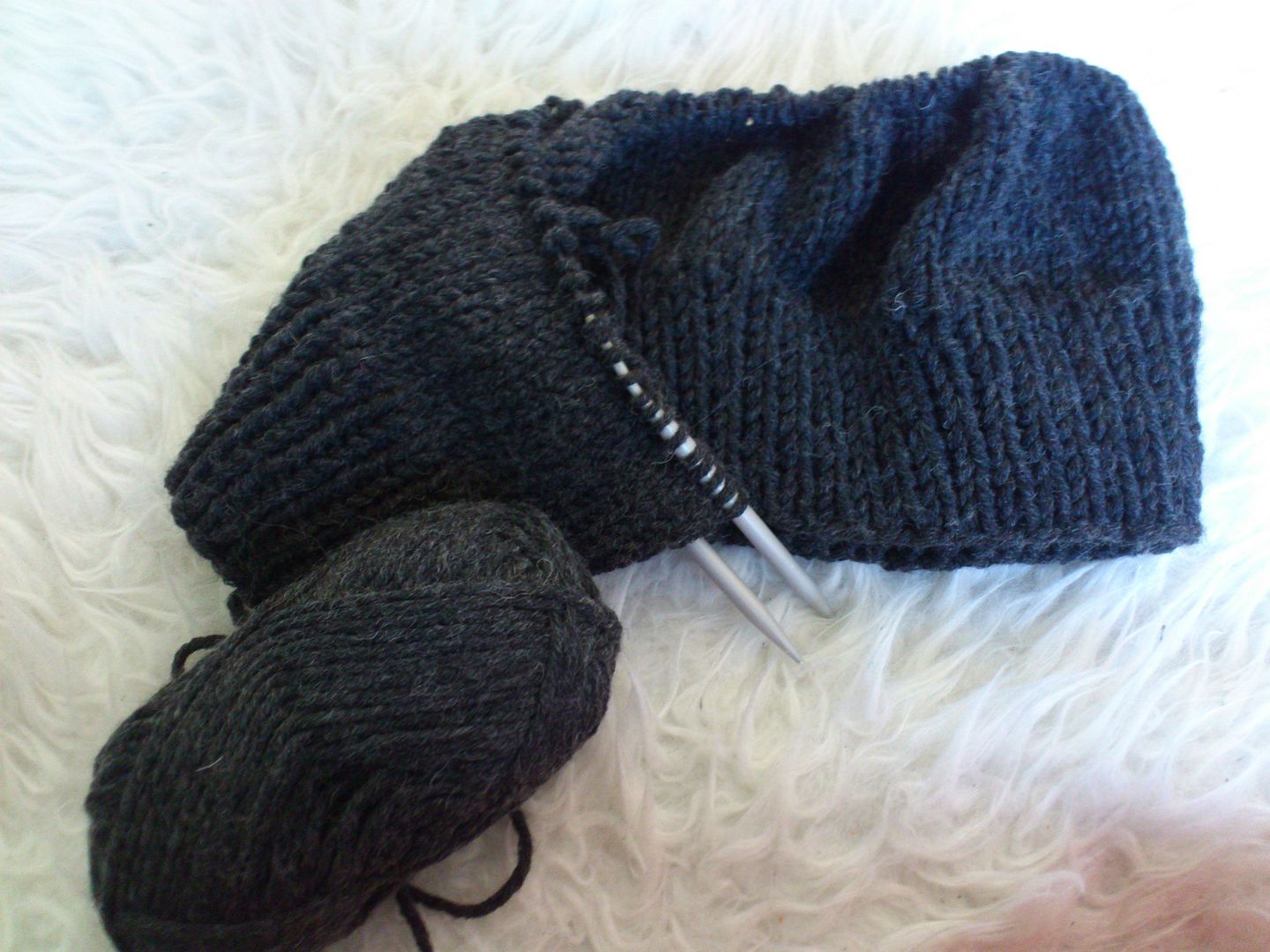Mal sehen, wie weit ich noch komme. Aber Glücklicherweise ist Glatt-rechts stricken selbst mit laufender Nase und Kopfschmerzen zu schaffen...